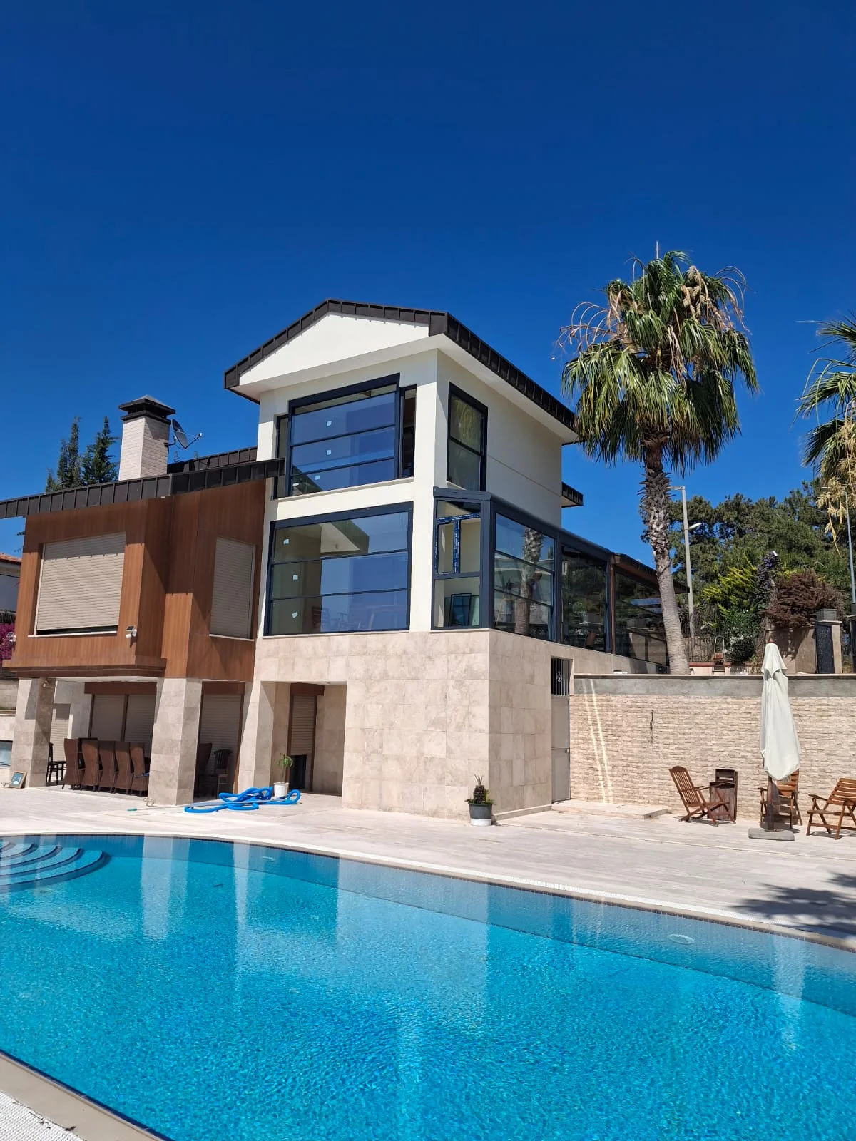 Dış mekanlarınızda dört mevsim konfor sunan giyotin cam tavanlı alüminyum pergole sistemleri, modern mimarinin en şık ve işlevsel çözümlerindendir. Alüminyum yapısı sayesinde uzun ömürlü ve dayanıklıdır, özel tasarımıyla ise her mekâna zarif bir dokunuş katar.